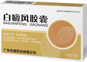 To circulate blood and resolve stagnation, and eliminate wind and remove toxins. It is used for the treatment of vitiligo caused by meridian obstruction and poor circulation of qi and blood, manifested as scattered distribution of white spots with pale color and distinct border.
